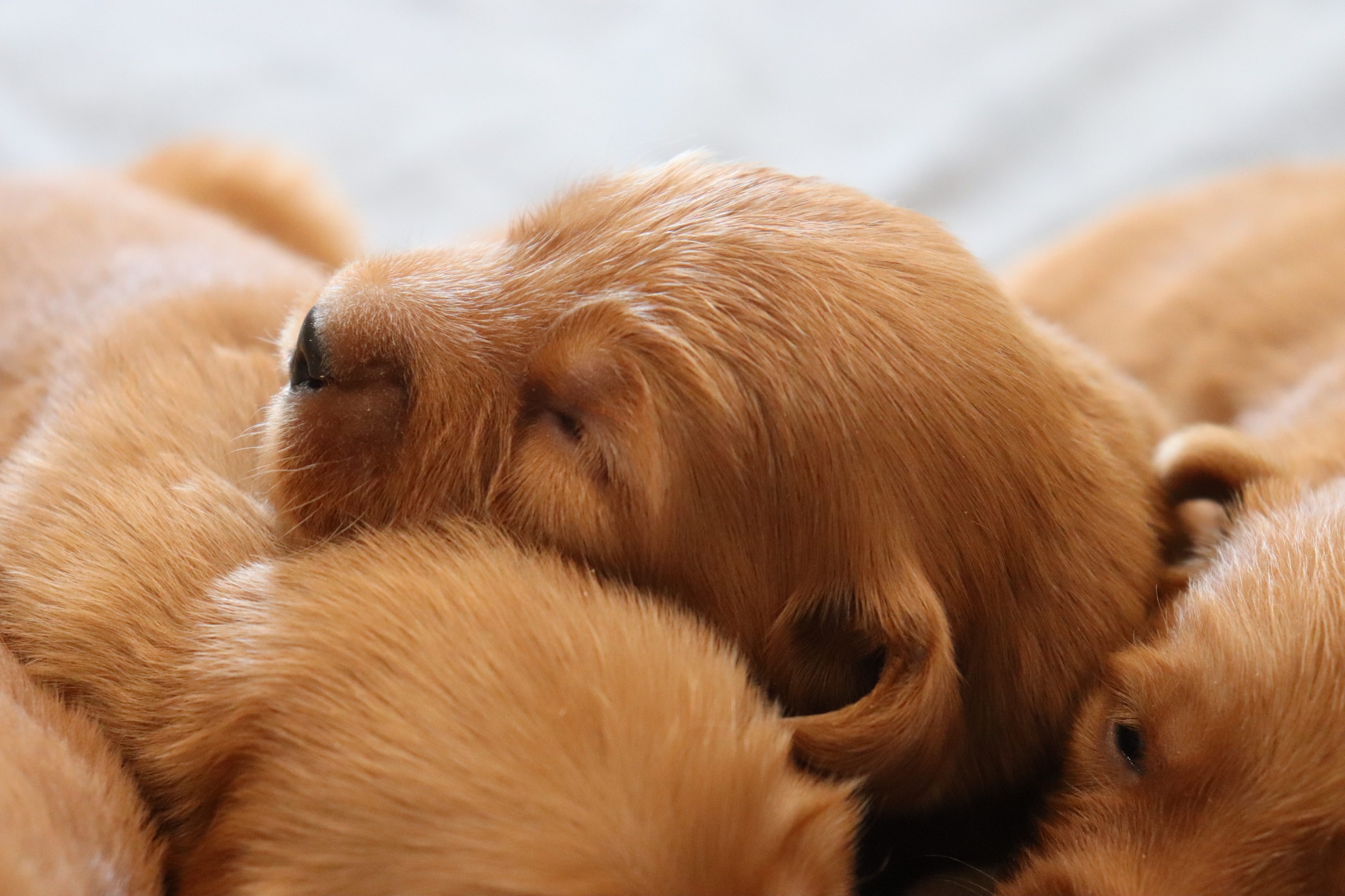 Georgia and Royal have 3 babies, 2 girls and 1 boy!. Both are dark golds with Royal being a shade a darker than Georgia. Royal is PennHip certified with good hips. He is loving and super friendly with his family, somewhat cautious to strangers to he knows they are fine. Georgia is genetic tested clear on common genetic traits for goldens. We are accepting deposits on this upcoming litter, we do picking choice of gender in the order of deposits received.